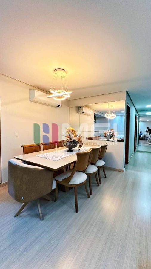 Apartamento de 128 m², com sala ampla integrada à varanda gourmet, ar-condicionado, cozinha planejada, área de serviço e 1 lavabo. São 4 quartos, sendo 2 suítes plenas e 2 suítes americanas, todos com armários.
