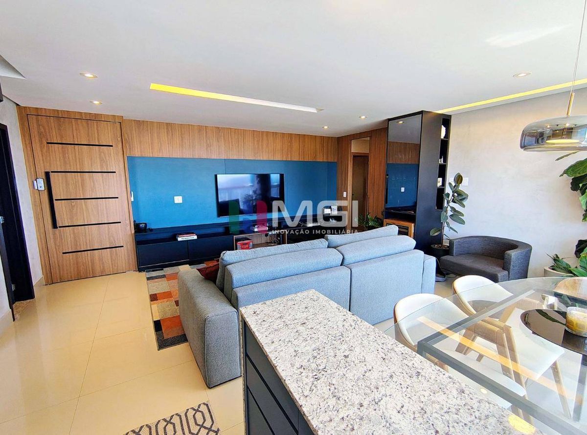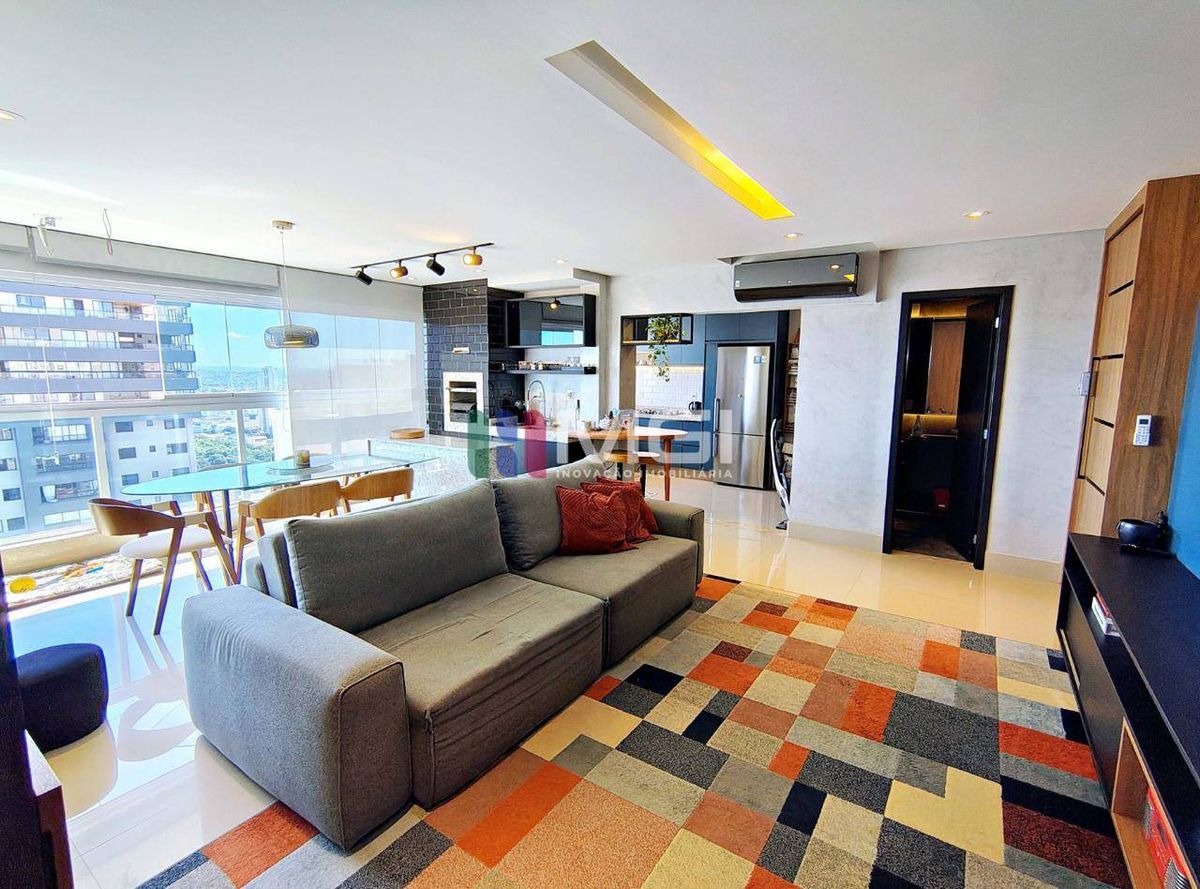 São 121 m² muito bem distribuídos, localizados no 28º andar, com uma vista espetacular do pôr do sol de Goiânia.