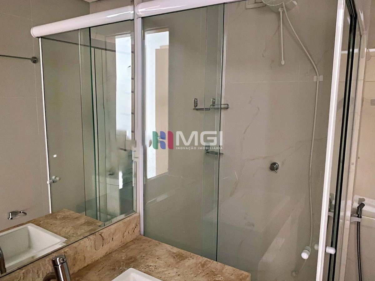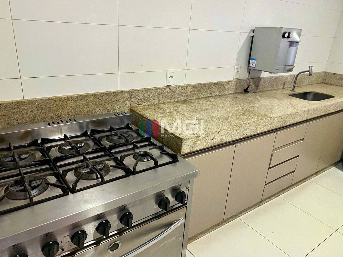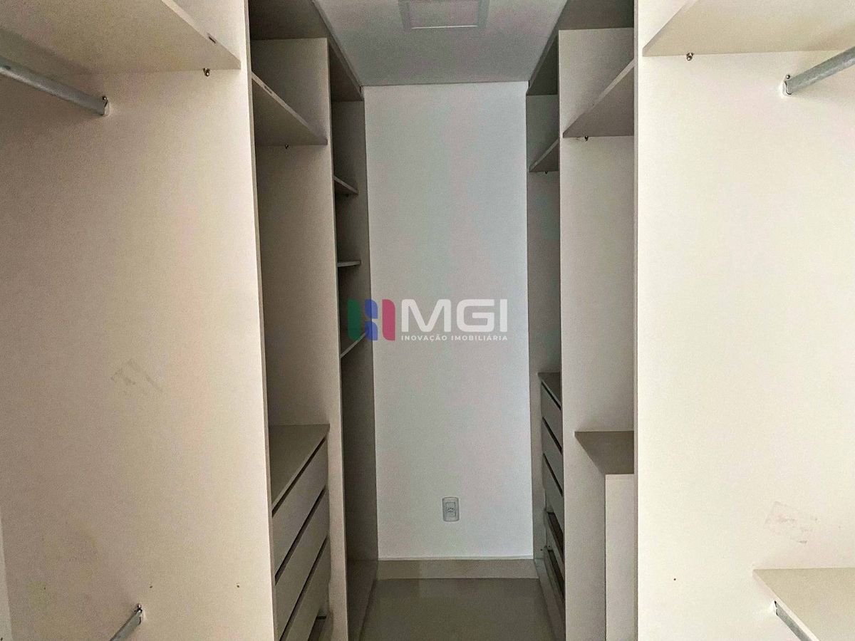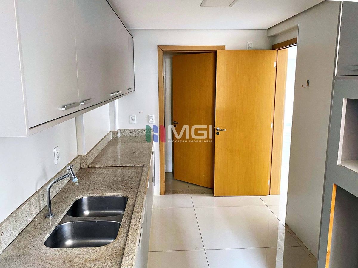 São 4 suítes espaçosas, todas equipadas com ar-condicionado e armários planejados, presentes também na cozinha, banheiros e área de serviço.