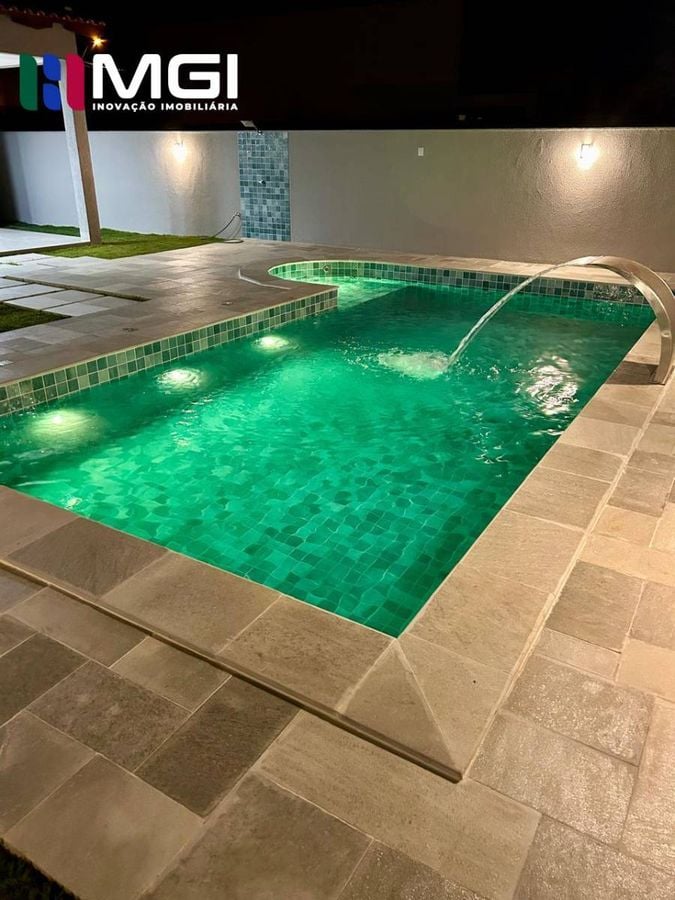 Piscina 8m x 3m com cascata, hidromassagem, iluminação em LED noturna e preparada para aquecimento solar