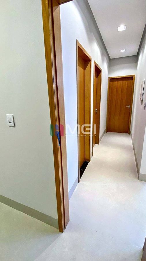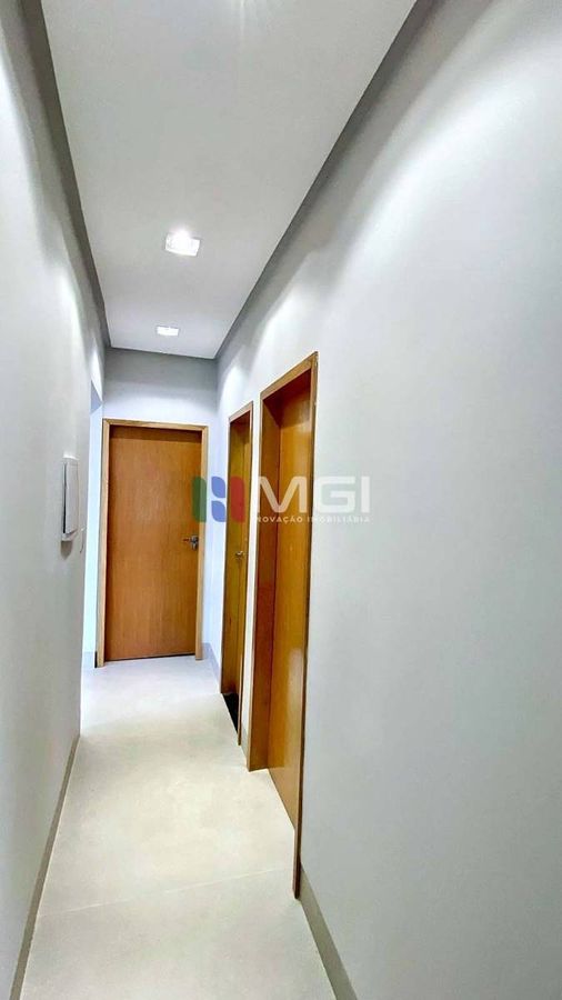 A casa tem 3 quartos, sendo uma suíte master com closet e banheiro espaçoso, além de banheiro social e lavabo.