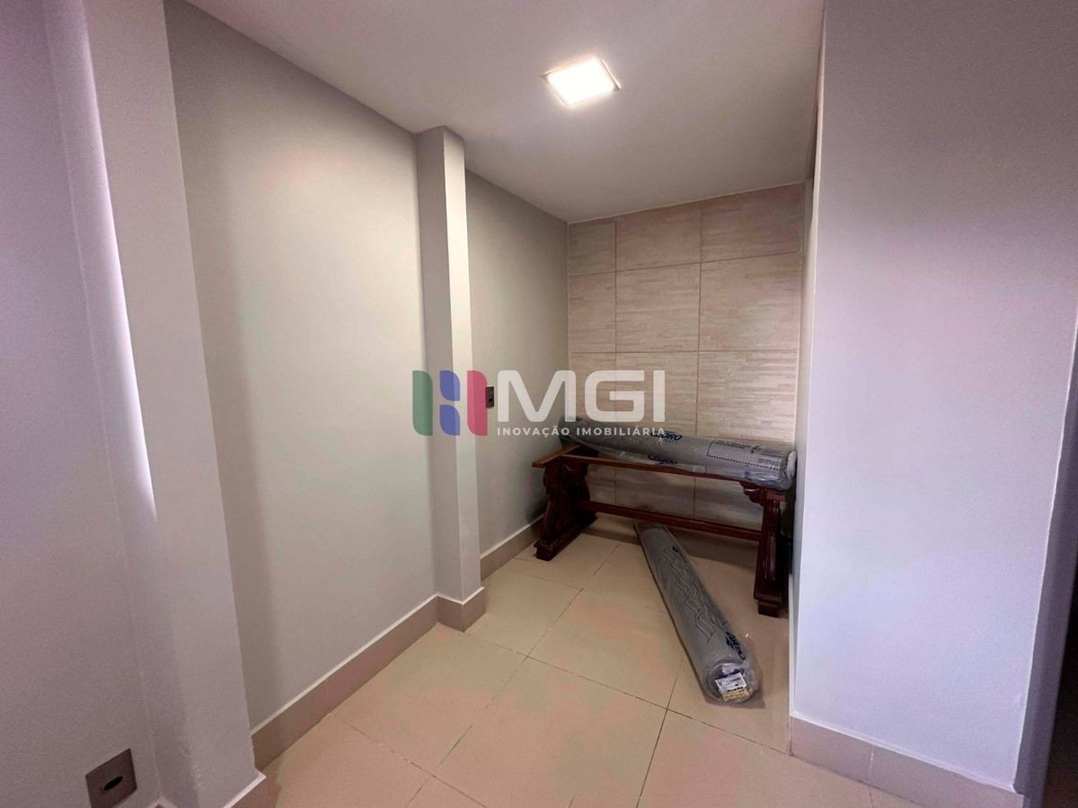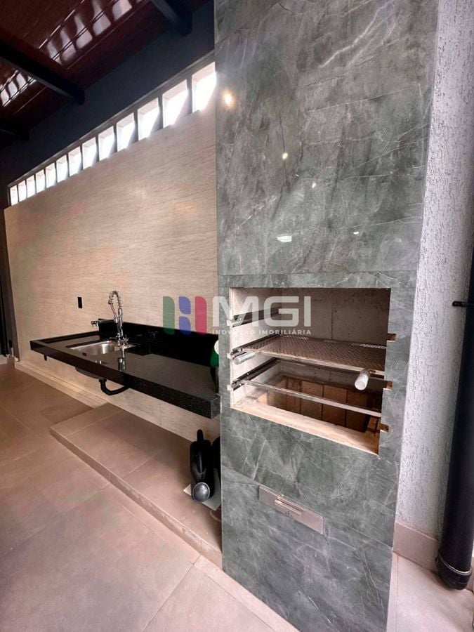 A varanda conta com churrasqueira e balcão de apoio, ideal para momentos de lazer.