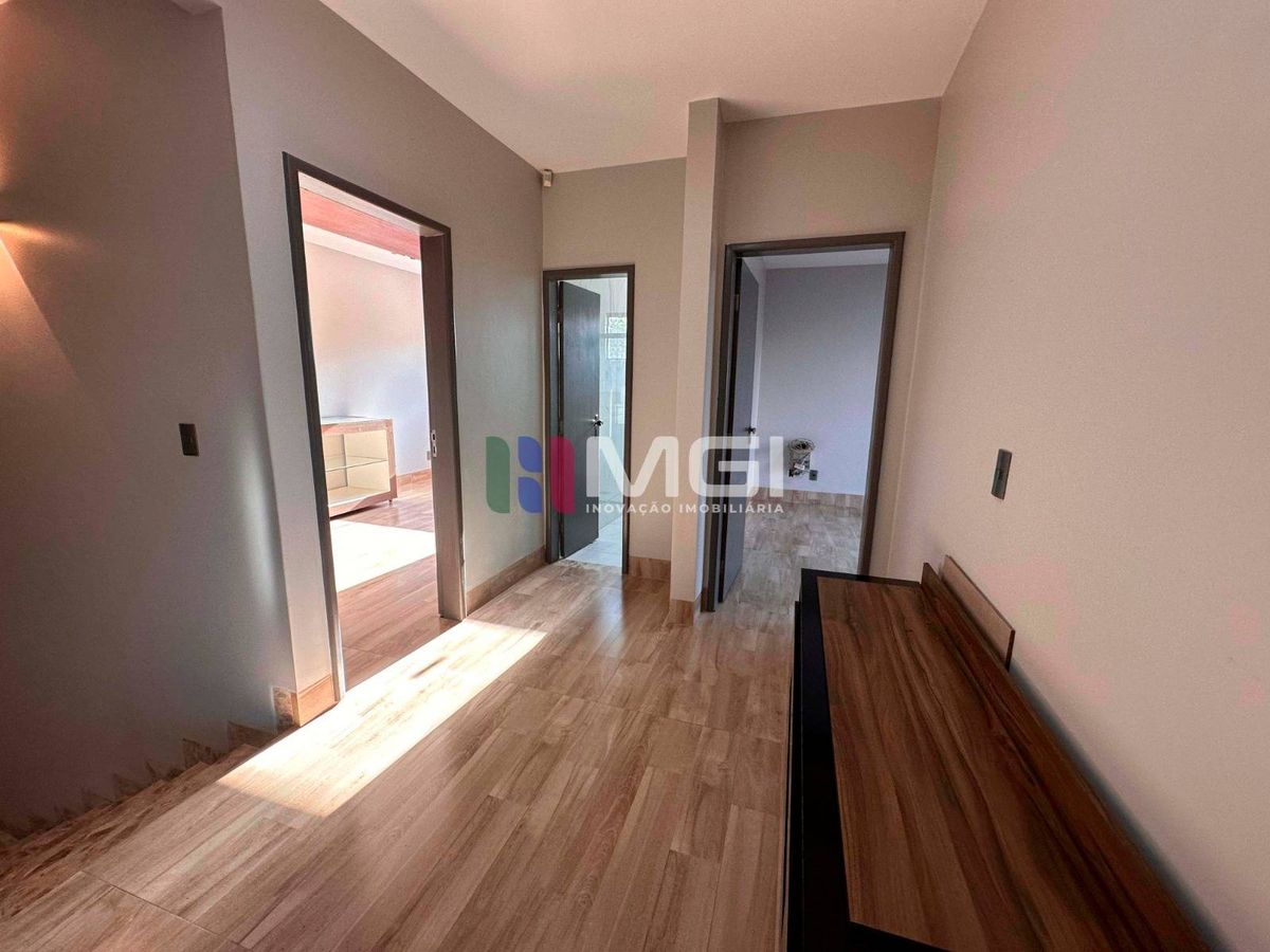 São 4 quartos no piso superior, incluindo 2 suítes — uma delas master — além de um cômodo no térreo com banheiro, ideal para 5º quarto ou escritório.