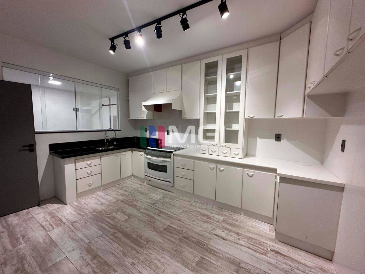 A casa ainda tem cozinha principal com armários, cozinha de apoio, área de serviço e sacada com acesso por dois quartos.