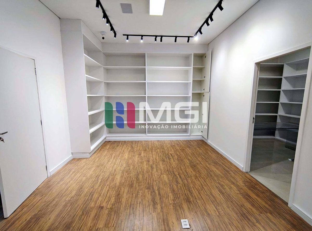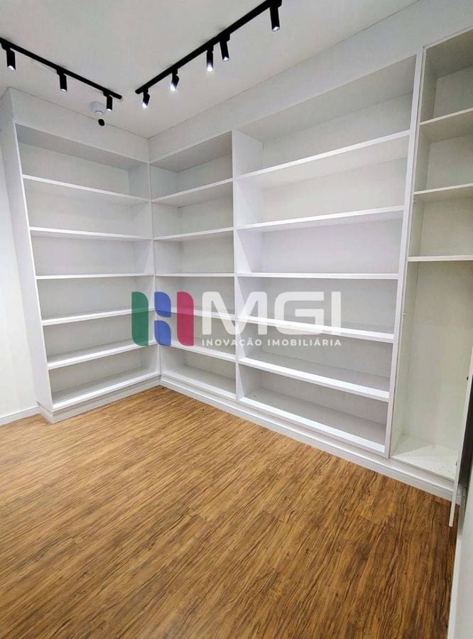 O espaço conta com iluminação em LED, dois expositores com LEDs, sistema de som ambiente, câmeras de segurança, oito manequins, armários planejados, vestiário, depósito e piso em ótimo estado.